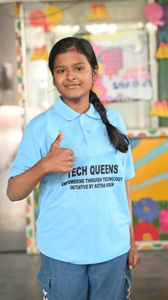As one of our Tech Queens, Kulsum is developing valuable technical skills that are helping shape her future. Her journey highlights the dedication and opportunities Aastha Kiran offers to empower young girls through education and technology.